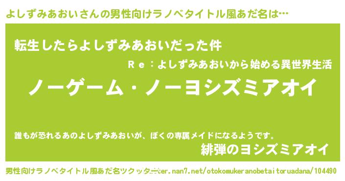 | 女子向けラノベタイトル風あだ名 | 『よしずみあおい恋絵巻』 |