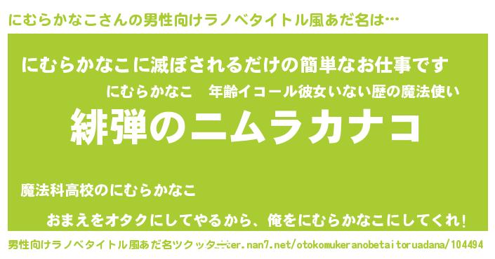 女子向けラノベタイトル風あだ名 | 『シンデレラにむらかなこ家の靴箱館』 |