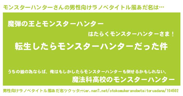 | 胡散臭い通販商品みたいなあだ名 | 『世界中を虜にした100年もののヴィンテージワイン…その名も「モンスターハンター」』 |