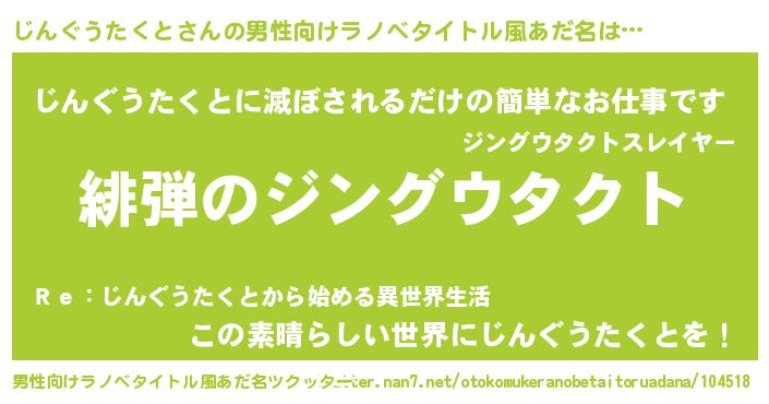 | 意味不明あだ名 | 『住所不定無職じんぐうたくと(13歳)』 |