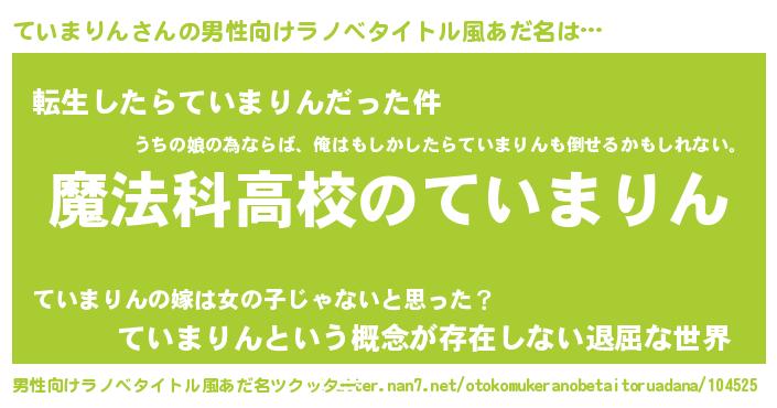 | 女子向けラノベタイトル風あだ名 | 『ていまりんなんてお断りですっ。』 |
