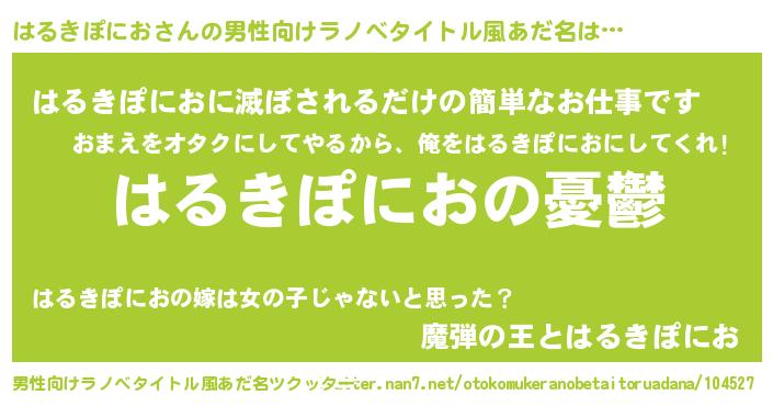 | 胡散臭い通販商品みたいなあだ名 | 『モテモテ間違いなしブレスレット…その名も「はるきぽにお」』 |