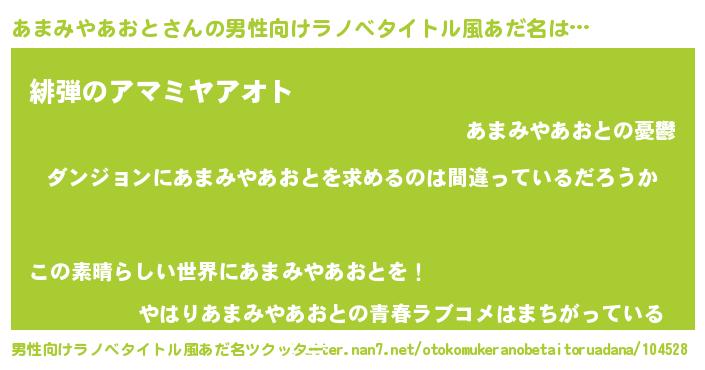 | 女子向けラノベタイトル風あだ名 | 『あまみやあおとは平凡を望む』 |