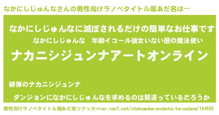 | 胡散臭い通販商品みたいなあだ名 | 『億万長者になれる霊験あらたかなお札…その名も「なかにしじゅんな」』 |