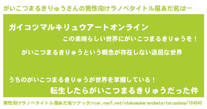 | ヘコむあだ名 | 『がいこつまるきりゅう(笑)』『がいにゅー』 |
