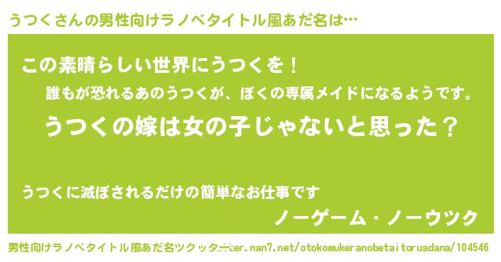 | ヒーロー風カッコイイあだ名 | 『幻影騎士ウツ』『仮面ウツダー』 |
