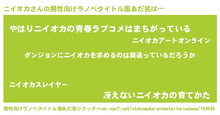 | 女子向けラノベタイトル風あだ名 | 『ニイオカの卵を拾いまして』 |