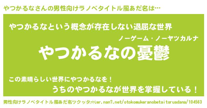 | 女子向けラノベタイトル風あだ名 | 『(仮)やつかるなのやんごとなき事情』 |