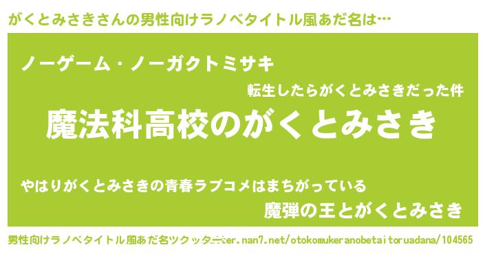 | 意味不明あだ名 | 『自称がくとみさき』 |