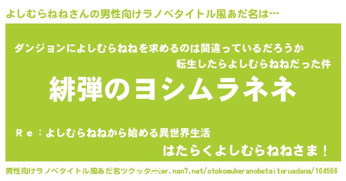 | 女子向けラノベタイトル風あだ名 | 『シンデレラよしむらねね家の靴箱館』 |