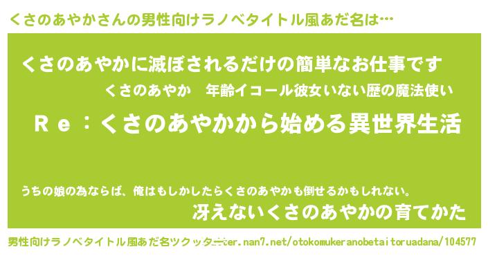 | 意味不明あだ名 | 『自称くさのあやか』 |