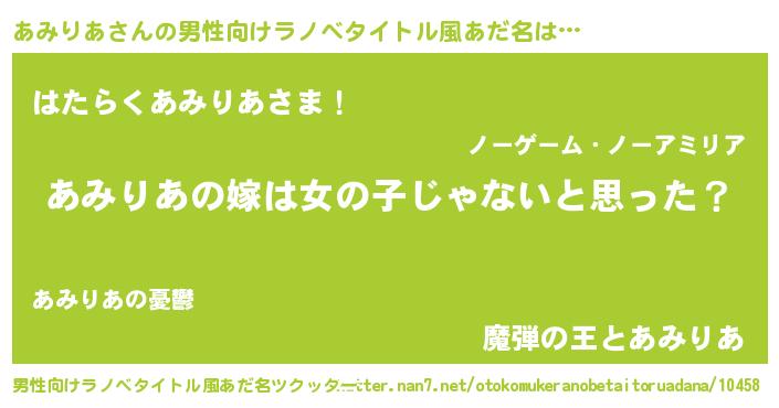 | 意味不明あだ名 | 『とにかく怪しいあみりあ』 |