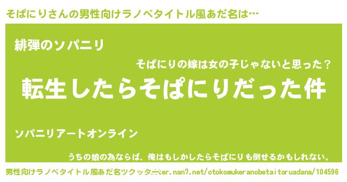 | 胡散臭い通販商品みたいなあだ名 | 『世界が平和になる高級そうな壺…その名も「そぱにり」』 |