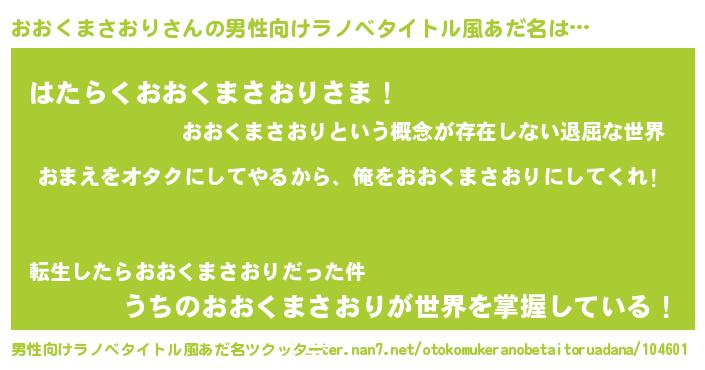 | 意味不明あだ名 | 『眠気覚ましガムおおくまさおり味』 |
