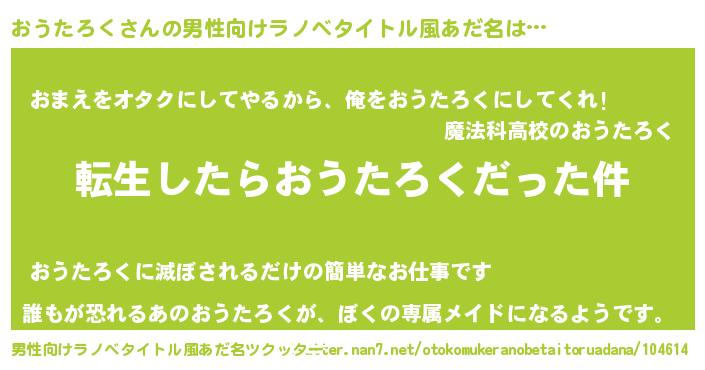 | 女子向けラノベタイトル風あだ名 | 『おうたろくの玉の輿計画!』 |
