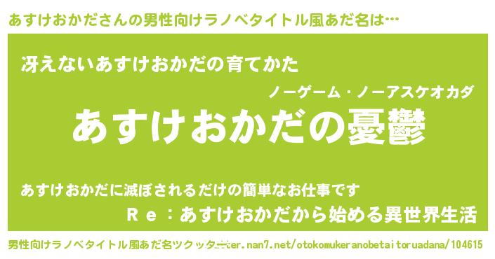 | 胡散臭い通販商品みたいなあだ名 | 『モテモテ間違いなし水晶球…その名も「あすけおかだ」』 |