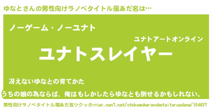 | ヘコむあだ名 | 『牛乳』『ゆなにゅー』『ゆな太郎』 |