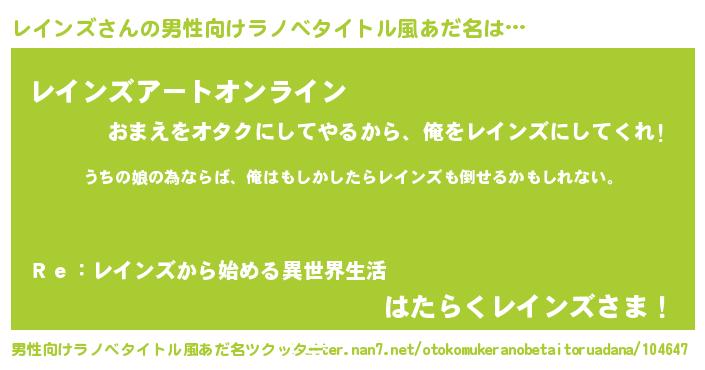 | 胡散臭い通販商品みたいなあだ名 | 『運命の人と巡り会える高級そうな絵画…その名も「レインズ」』 |