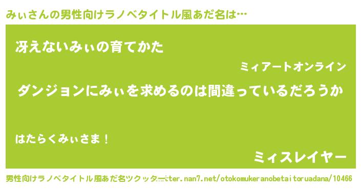 | 女子向けラノベタイトル風あだ名 | 『みぃは平凡を望む』 |