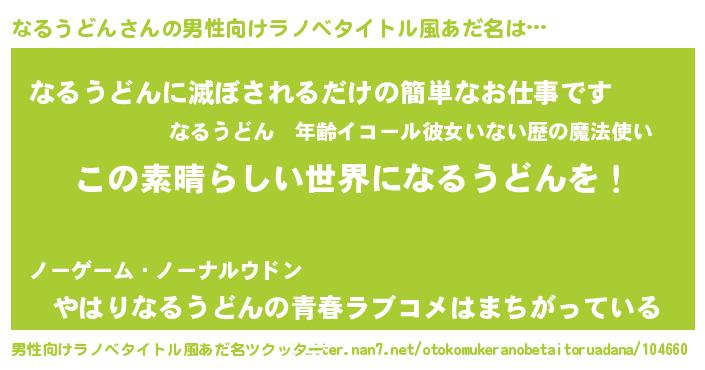 | ヒーロー風カッコイイあだ名 | 『仮面ナルダー』『愛の使者なるうどん』 |