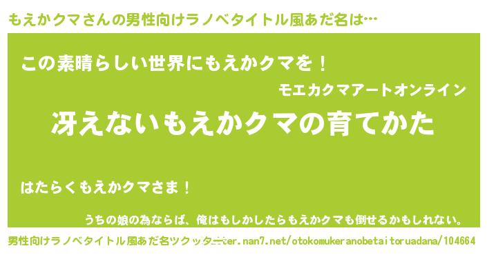 | 意味不明あだ名 | 『住所不定無職もえかクマ(6歳)』 |