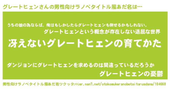 | ヒーロー風カッコイイあだ名 | 『ウルトラグレートヒェンマン』 |