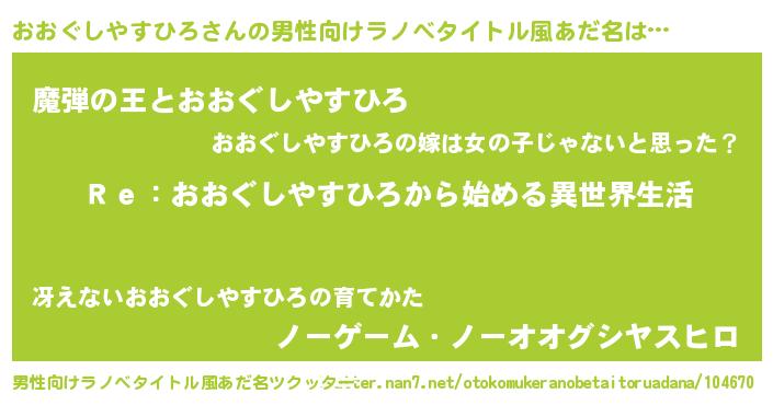 | 女子向けラノベタイトル風あだ名 | 『闇のおおぐしやすひろ』 |