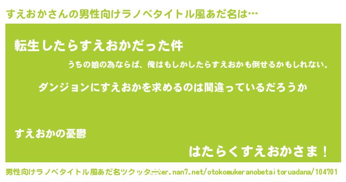 | 女子向けラノベタイトル風あだ名 | 『すえおかは平凡を望む』 |