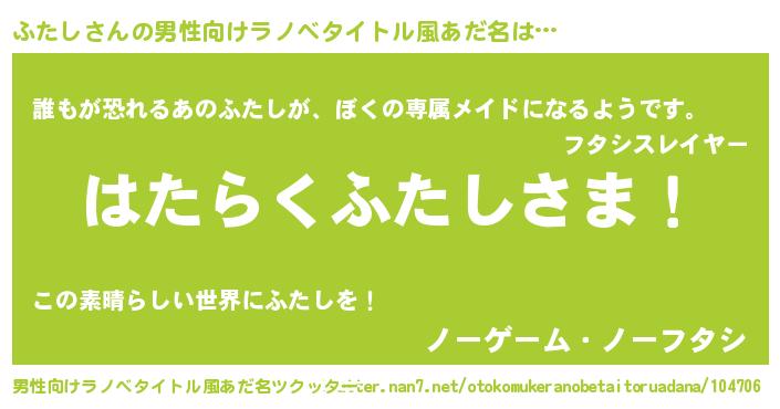 | 胡散臭い通販商品みたいなあだ名 | 『来世でも幸せになれる水素水…その名も「ふたし」』 |