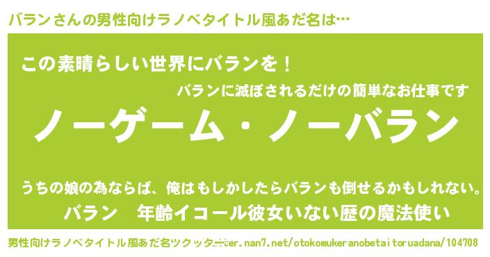 | 女子向けラノベタイトル風あだ名 | 『死神バランの再婚』『バラン伯爵の花嫁』 |
