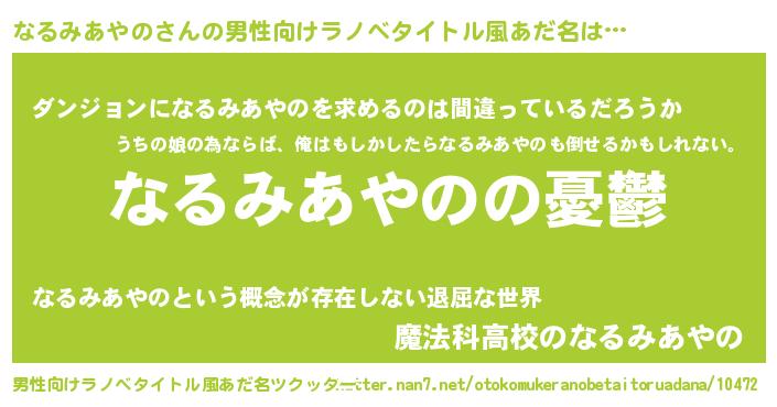 | 胡散臭い通販商品みたいなあだ名 | 『モテモテ間違いなしブレスレット…その名も「なるみあやの」』 |