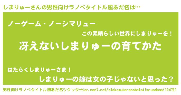 | 女子向けラノベタイトル風あだ名 | 『シンデレラしまりゅー家の靴箱館』 |
