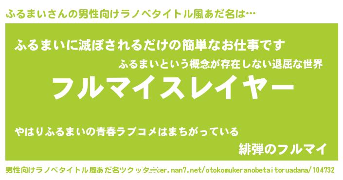 | ヒーロー風カッコイイあだ名 | 『ネオフルマイ』『ウルトラふるまいマン』 |