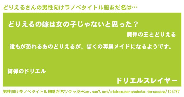 | 女子向けラノベタイトル風あだ名 | 『どりえるの契約王妃』 |