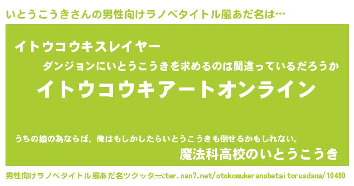 | 女子向けラノベタイトル風あだ名 | 『誰かこのいとうこうきを説明してください! ~契約から始まるウェディング~』 |