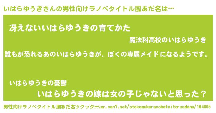 | ヘコむあだ名 | 『いはらゆうき(笑)』『いはを』 |