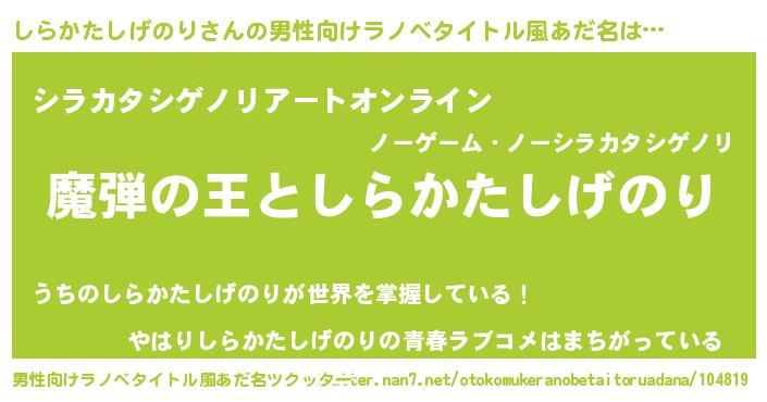 | 意味不明あだ名 | 『住所不定無職しらかたしげのり(68歳)』 |