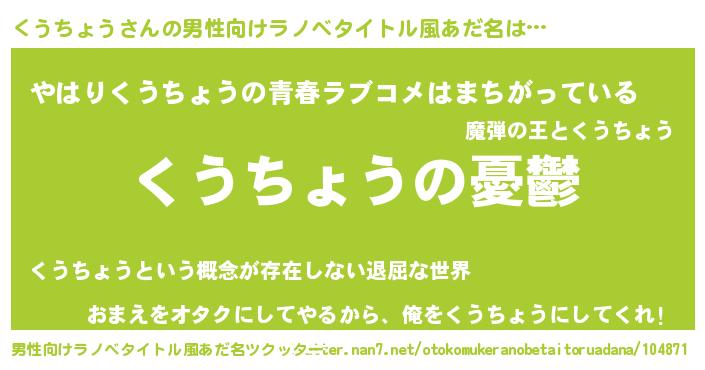 | 女子向けラノベタイトル風あだ名 | 『(仮)くうちょうのやんごとなき事情』 |