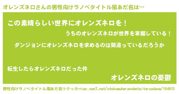 | 女子向けラノベタイトル風あだ名 | 『オレンズネロは平凡を望む』 |