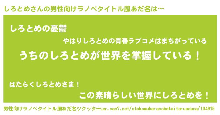 | 意味不明あだ名 | 『ペロリンしろとめ』『自称しろとめ』 |