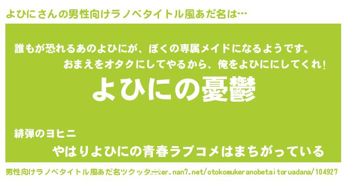 | ヘコむあだ名 | 『よひふぇ~』『よひに(爆)』 |
