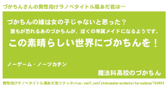 | 女子向けラノベタイトル風あだ名 | 『悪役づかちんに転生したようですが、知った事ではありません』 |