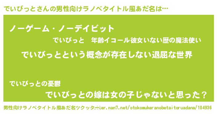 | 胡散臭い通販商品みたいなあだ名 | 『来世でも幸せになれる健康食品…その名も「でいびっと」』 |