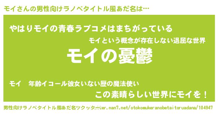 | 胡散臭い通販商品みたいなあだ名 | 『モテモテ間違いなしブレスレット…その名も「モイ」』 |