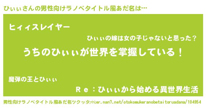 | 意味不明あだ名 | 『ニラ科ひぃぃ属』『自称ひぃぃ』 |