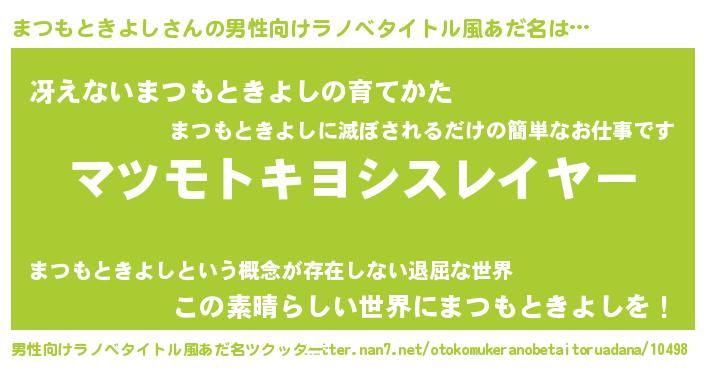 | 意味不明あだ名 | 『めかぶ科まつもときよし属』 |