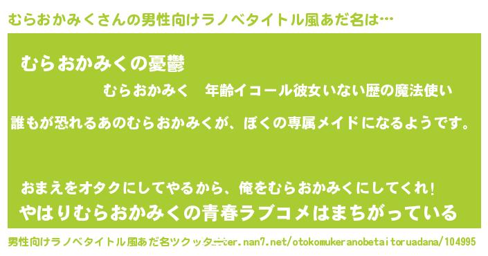 | 女子向けラノベタイトル風あだ名 | 『むらおかみくの契約王妃』 |