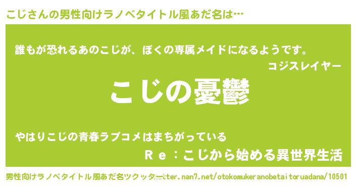 | 胡散臭い通販商品みたいなあだ名 | 『必ず成功するブレスレット…その名も「こじ」』 |