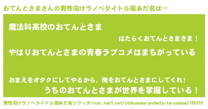 | 女子向けラノベタイトル風あだ名 | 『おてんとさまの雑貨屋さん』 |