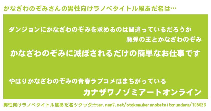 | 女子向けラノベタイトル風あだ名 | 『横柄かなざわのぞみと宰相陛下』 |